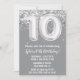 Gray Silver 10th Birthday Party Invitation