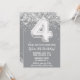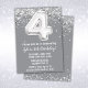 Plain white envelopes are included with paper invitations and will come to fit the invitation size you select. If you don’t need the envelopes, you may choose to not receive them by selecting the dropdown below "Envelopes" and choosing "None." If you’d like to have a design on your envelopes, you can browse all of these available envelopes to find the design that complements your Gray Silver 4th Birthday Party Invitation.