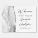 This elegant modern wedding welcome sign features a gray and white watercolor agate design trimmed with faux silver glitter. Easily customize the charcoal gray text, with the names of the bride and groom in script over a large, pale gray ampersand and the remaining text in sans serif font.