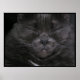 Cute poster of a beautiful gray long-haired Himalayan cat fast asleep.