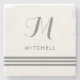 These simple, elegant coasters will add a personalized touch of style to your home! Gray stripes appear with your initial in modern script, and your name in classic matching text.
