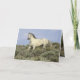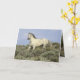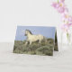 This battle-scarred wild gray stallion comes proudly down the hill to investigate in the Adobe Town Herd Area of Wyoming. There is an additional image of the stallion inside the card. Both images are by Carol Walker.