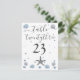 Gray Starfish Blue Shells Beach Wedding Table Number Card. Two hearts in the sand, dark blue background