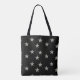Gray stars pattern on black tote bag