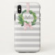 Gray stripe Christmas wreath monogram Case-Mate iPhone Case