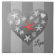 Love is in the air with this gorgeous coastal themed Ceramic Tile. Celebrate Valentine's Day with this seaside-inspired addition to your nautical or beach style home decor. The Ceramic Tile features a gray striped background and a heart filled with various kinds of seashells with a red starfish as the focal point. The text reads "Love" but may be edited for personalization at no additional cost. The Tile may be used as a functional trivet or a decorative home decor accent piece. Browse the coordinating products available in our popular Coastal Valentine Collection including cards, stickers, magnets, paper plates, napkins, pillows, and more!