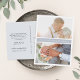 Elegant and modern wedding photo thank you postcards feature two photos bisected by a thin gray stripe bearing your custom greeting and/or names. Add a custom pre-printed message of thanks to the reverse side, or delete the sample text if using a handwritten message.