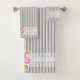 GRAY STRIPES WITH PINK FLOWERS BATH TOWEL SET