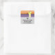 Stylized sunset with flying seabirds sits above a customizable gray bottom half featuring placeholders for logo, “Sidewalk Sale,” date, and website. Designed as a 1.5”x1.5” square label to pre-brand packaging or purchases ahead of your event.