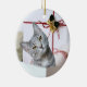 Light gray, or grey, tabby kitty cat has found the perfect box to await Christmas in cute cat lovers Christmas holiday ornament