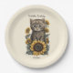 Cute gray tabby cat/kitten with sunflowers birthday party paper plates personalized with the name of the guest of honor and her party date. Contact me for assistance with your customization or to request additional matching or coordinating products for your celebration.
