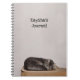Gray tabby cat sleeping on cardboard box business notebook. Beautiful cozy sleepy pet photograph digitally painted. For cat lovers. Artistic, trendy adorable kitty. Chic, modern, stylish, artsy. Image copyright Marg Seregelyi Photography.
