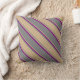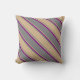 This throw pillow design features a pattern of stripes having colors like gray, tan, and purple.
