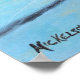 This poster is of an original oil painting by award winning Colorado artist Debra Mickelson. It depicts a beautiful gray and tan striped tabby cat lying on a bright blue deck. The vivid blues are repeated throughout the cat's coat, along with ginger brown and warm grays. The green yellow eyes draw you in!