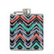 Gray, Teal, And Coral Hand Drawn Chevron Pattern Hip Flask