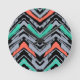 Gray, Teal, And Coral Hand Drawn Chevron Pattern Round Clock