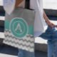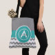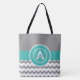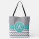 Gray teal chevron monogram personalized tote bag