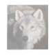 Face of a grey timber wolf with bright orange eyes. Realistic artwork created from an original oil painting by equine and wildlife artist Crista S. Forest.