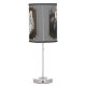 I have purchased other similar lamps. I use them as extra light for guest's. They are inexpensive, easy to assemble and good height for reading. I like that there are many pre-made shades to choose from and that, like this one, you can use your own art.