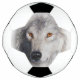 Face of a grey timber wolf with bright orange eyes. Realistic artwork created from an original oil painting by equine and wildlife artist Crista S. Forest.
