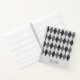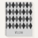 A notebook designed with an argyle pattern in gray tones. Customize it with your own text among other options.