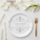 Simple and elegant Fancy Ornamental Wedding Paper Plates in gray and white featuring a sophisticated art deco style ornamental flourish border. Easy to customize, simply add your wedding details in the text fields provided. Click "Customize It" to find more personalization options.