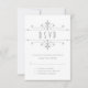 Simple and elegant Fancy Ornamental Wedding RSVP Card in gray and white featuring a sophisticated art deco style ornamental flourish border. Easy to customize, simply add your wedding details in the text fields provided. Click "Customize It" to find more personalization options.