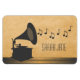 Quirky and unique Vintage Gramophone Premium Flexi Magnet in dark gray featuring a silhouette of an old-fashioned gramophone and a cascade of musical notes on a digital art rendered paper background. This chic magnet will add a vintage flair to any magnetic surface and is perfect for any music lover. Easy to customize, simply personalize with the text of your choosing. Click on the "Customize It" button to find additional personalization options.