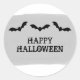 Trendy and fun Watercolor Bats Halloween Stickers with a light gray watercolor look background and three whimsical little bats. These simple and modern stickers can be easily customized with your own Halloween greeting. Find more customization options by clicking Customize It.