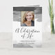 Modern folded funeral program in charcoal, pale gray, and white, with a pretty calligraphy script. On the cover, a photo of your loved one along with their name and years living. Inside you can write the obituary and program. On the back you can add acknowledgements.