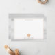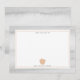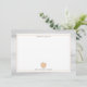 A notecard for teachers featuring a peach pink apple at bottom with a gray watercolor inspired border. Personalize the name.