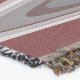 A quality printed throw has its advantages. This is a much finer weave throw than its loopier cousins, and though lighter, it is worth the investment for custom room accessorizing. The back is much prettier than the typical brown, and the fringe on the long sides very vivid, the selvage nicely done. Before photographing, I washed the throw in cold water, delicate, with a thicker woven throw the same size. On tumble dry low, this throw was dry in half the time as the other. This is a very practical quality if you use throws for furniture covers or to wrap up in frequently. The sleekness of the fabric makes it a great layer for accenting or protecting without the feeling of sitting on too much stuff. Perfect for napping or when you feel a light chill coming on. The color printing is beautiful and on this fabric, matched the design and color of my Photoshop image. This is an advantage for blending room fabrics and colors. The fringe on the short sides prints the colors from the design image and therefore varies from the side fringe. I streaked a white fractal line through the plaid pattern to give the illusion of weaving. This printed as crisp as an illusory thread, and put some white in the short side fringe, showing another advantage of print vs loomed- for artistic purposes, line lines, detail, and color integrity can be planned and preserved. My loomed throws have color limitations and more of a needlepoint texture. Print throws reproduce an exact image. The throw felt a little stiff straight out of the package, but this went away in the first delicate wash. Of course I searched the wash water for ink or bleeding and there was none.