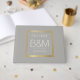 A book of blank pages in which visitors or guests at an event (such as your wedding) sign their names... a gray album with your own initials and special date... an elegant idea for your 'best day ever' memories