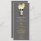 Wedding Menu Dinner Card for your reception. Mason Jar hanging on a hook filled with country wildflowers. A Slate Gray background against the hanging Mason Jar and wildflowers colors of yellows and white daisies. For inquiries about custom design changes by the independent designer please email paula@labellarue.com BEFORE you customize or place an order.