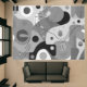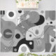 Different shades of gray, black, and white tones, different whimsical shapes, and modern and fun geometric compositions.