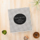 Personalized family recipe binder with simple text on this gray and white gingham checkered background. The cookbook front as well as the album spine is ready to personalize with your text.