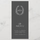 Grey and white wedding dinner menu. Edit this 4 course menu with your own meal option wording. Modern yet classical hand drawn oval leaves and monogram monotone design. © Original oval drawing and design by Sarah Trett for www.mylittleedenweddings.com exclusively on zazzle.