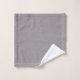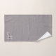 Personalized gray and white monogrammed bath towel set with a script font on a gray faux linen background. Simple elegance. Refresh your bathroom decor with a minimalist typographic style.
