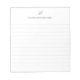 Monogrammed notepad in white with your initial and name in pencil gray. An elegant lined notepad personalized with your monogram in a simple design.