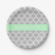 Gray White Moroccan #5 Mint Name Monogram Paper Plates