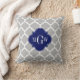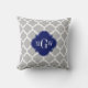 Gray White Moroccan #5 Navy 3 Initial Monogram Throw Pillow