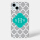 Gray White Moroccan #5 Teal 3 Initial Monogram Case-Mate iPhone Case