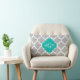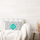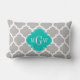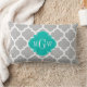 Gray White Moroccan #5 Teal 3 Initial Monogram Lumbar Pillow