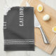 Celebrate life on the farm with this cute personalized kitchen towel featuring your family name or farm name and year established in crisp white lettering accented with a chicken illustration on a charcoal gray background. Rope stripe detailing along the sides completes this rustic farmhouse style design.