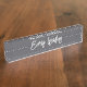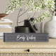 Elegant desk nameplate features your name, title, or choice of personalization in white hand scripted cursive lettering on a dark gray background.
