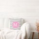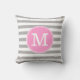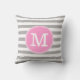 Gray White Stripes Minimal Pastel Pink Monogram Throw Pillow