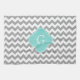 Dark Gray and White Chevron ZigZag Pattern, Aqua / Turquoise Quatrefoil Label Monogram