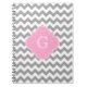Gray Wht Chevron Pink Quatrefoil Monogram Notebook