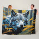 Gray Wolf in Golden Forest Fleece Blanket