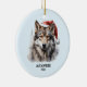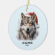 Gray Wolf Red White Santa Hat Personalized Ceramic Ornament